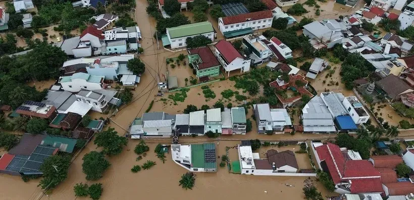 An aerial view of a severely-flooded area in the central province of Khanh Hoa. Photo: VNA