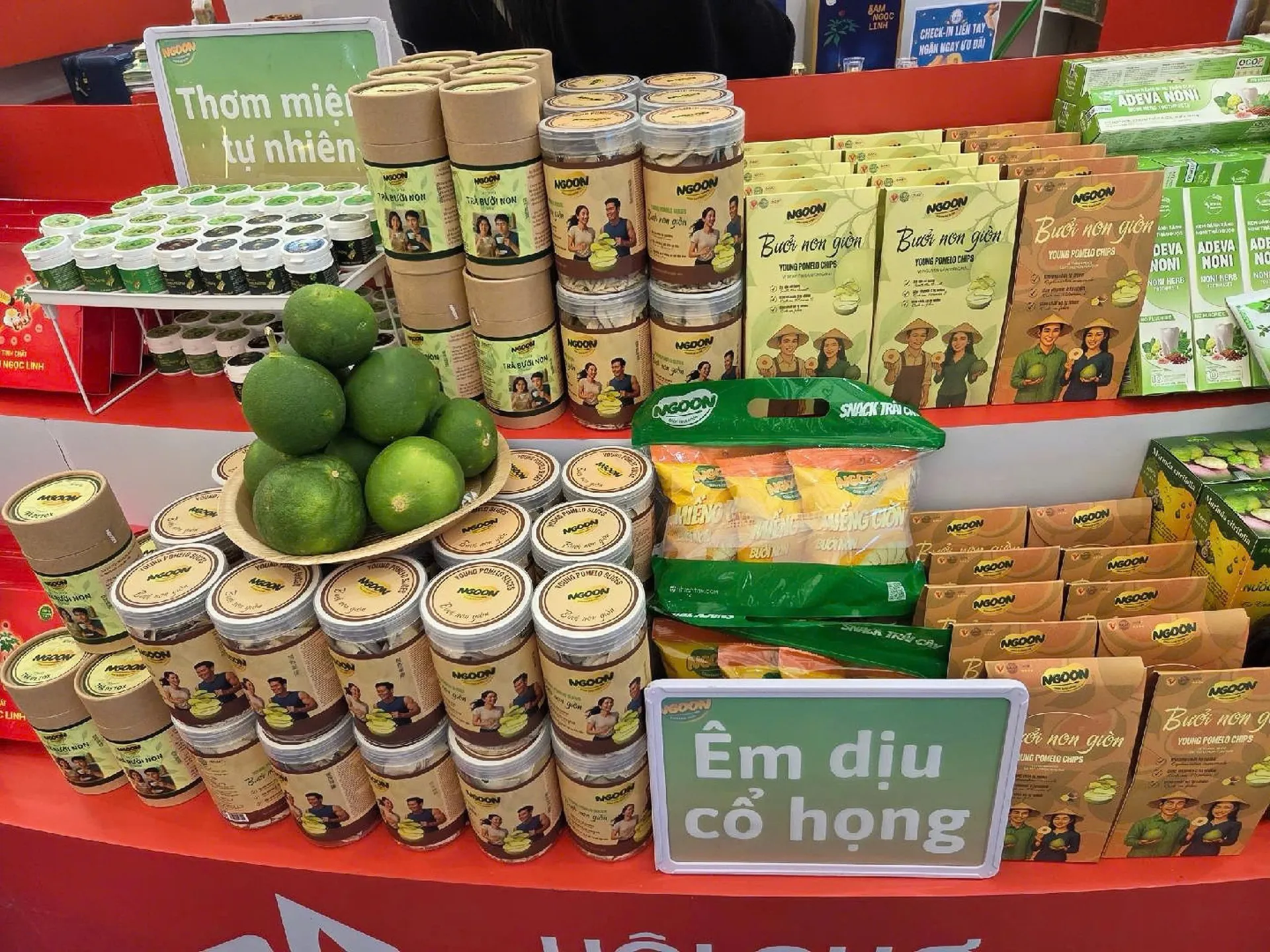 OCOP products made from organic pomelo of the Que Duong Safe Pomelo Cooperative are showcased at the Autumn Fair 2025.