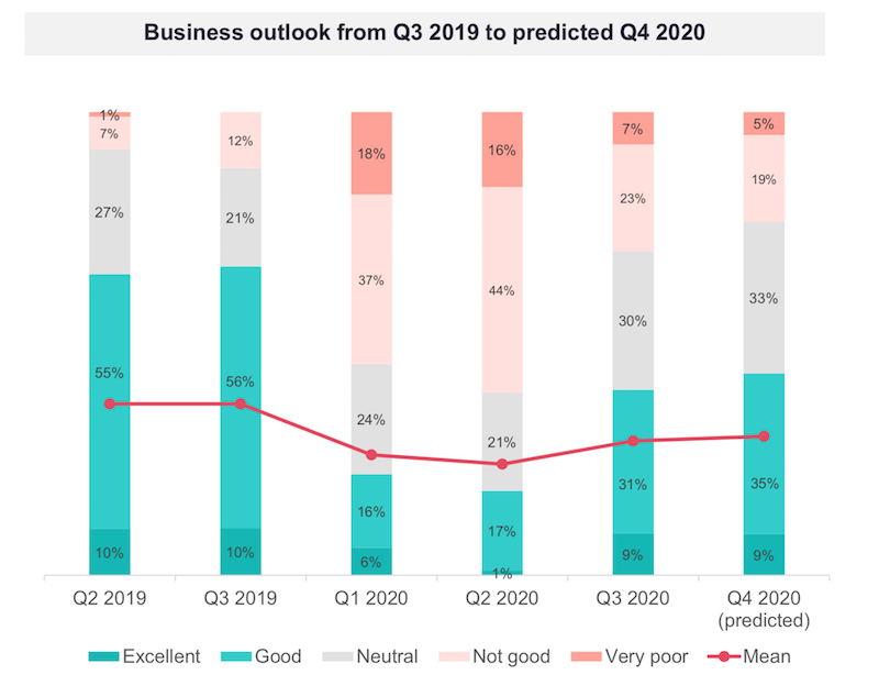 Business leaders were more positive about their own enterprise in Q3, with 40% describing their performance as either “Excellent” or “Good” – more than double the 18% recorded in the previous three-month period.