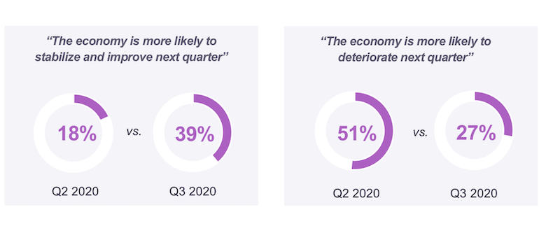 European business leaders are more optimistic toward the end of 2020 as their confidence has rebounded in quarter 3.