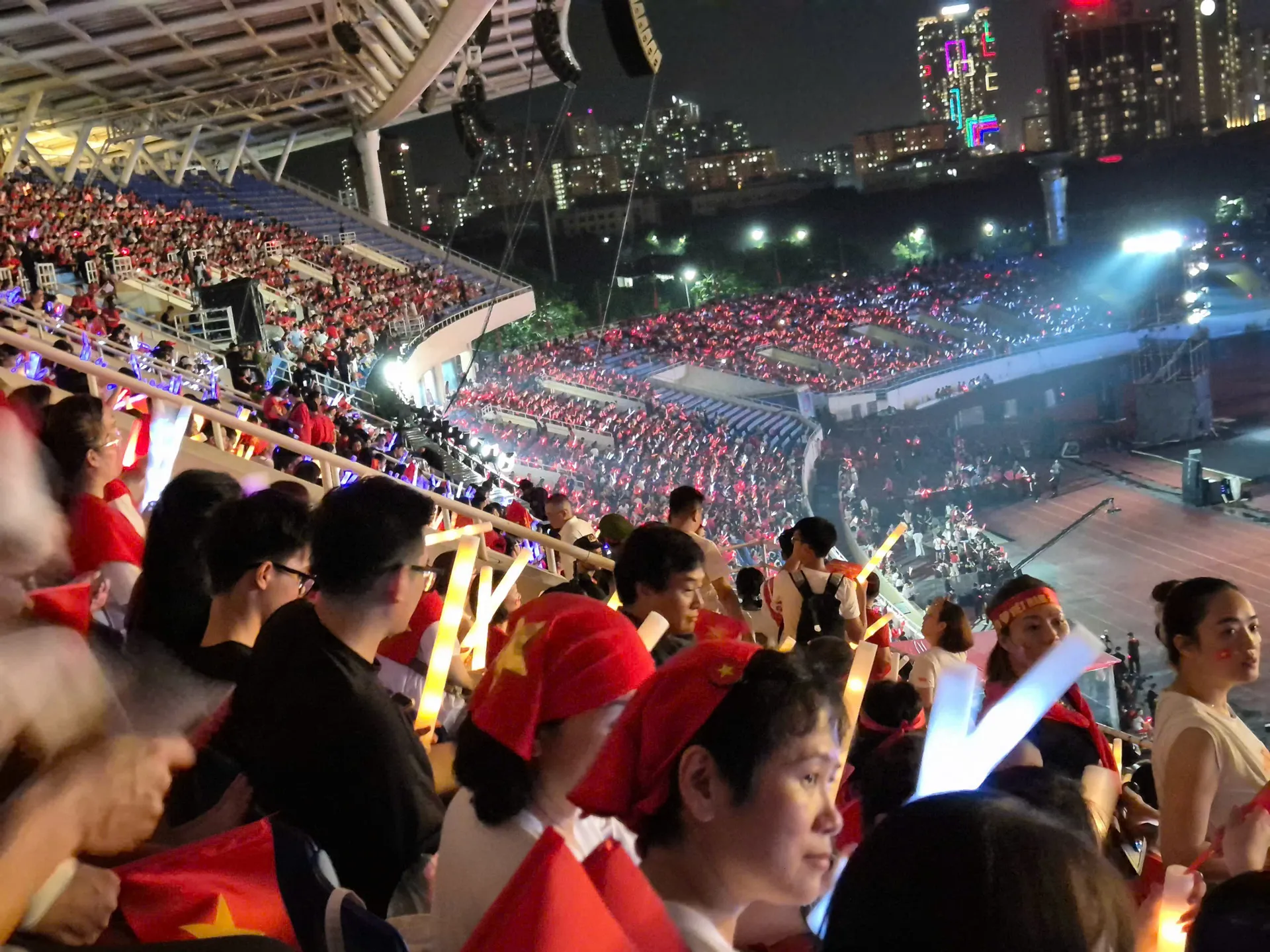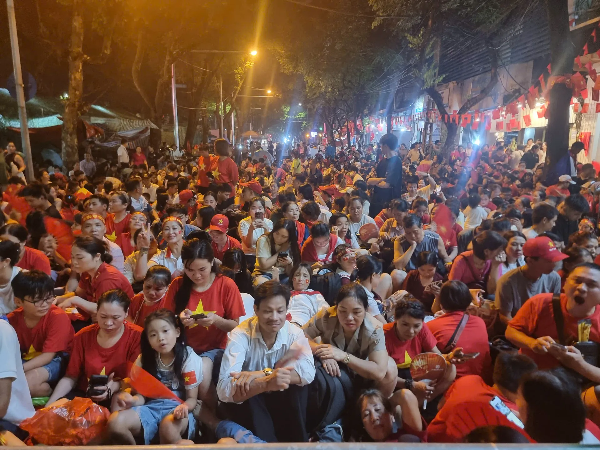 Some had come since the afternoon, carrying stools and snacks to reserve their place. The red flags, though wet from the rain, still flew proudly. For many, this was not just about waiting for a parade but a way to show love for the country.