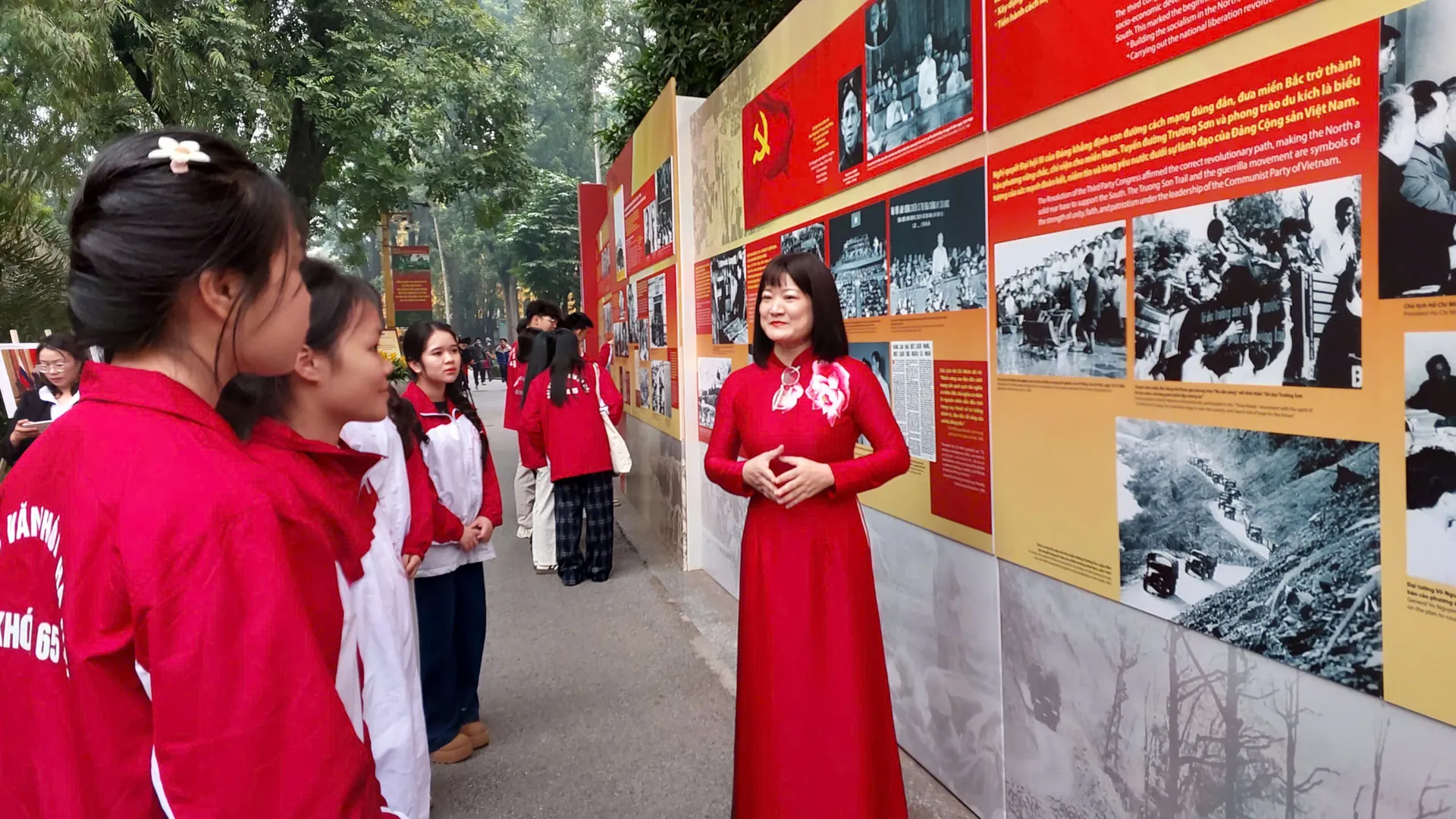 The program features the exhibition The Communist Party of Vietnam: A Glorious Golden Page in History, which reviews the Party’s 95-year journey of formation and development through its 13 national congresses.