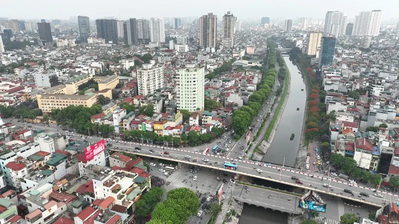 | A bird's eye view of Lang Road along the To Lich River in Hanoi. Photo: Pham Hung/The Hanoi Times |