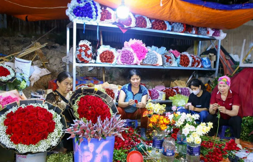 Colorful flowers at Quang Ba night market. Photo: Khanh Huy/The Hanoi Times