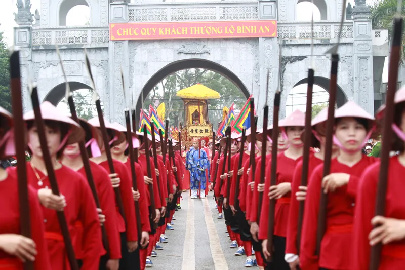 The main festival is held in the sixth day, which is said to be the day Hai Ba Trung held a banquet to soldiers, so the villagers later organized the festival to remember that event, to honor the heroic tradition of building and defending the country. |