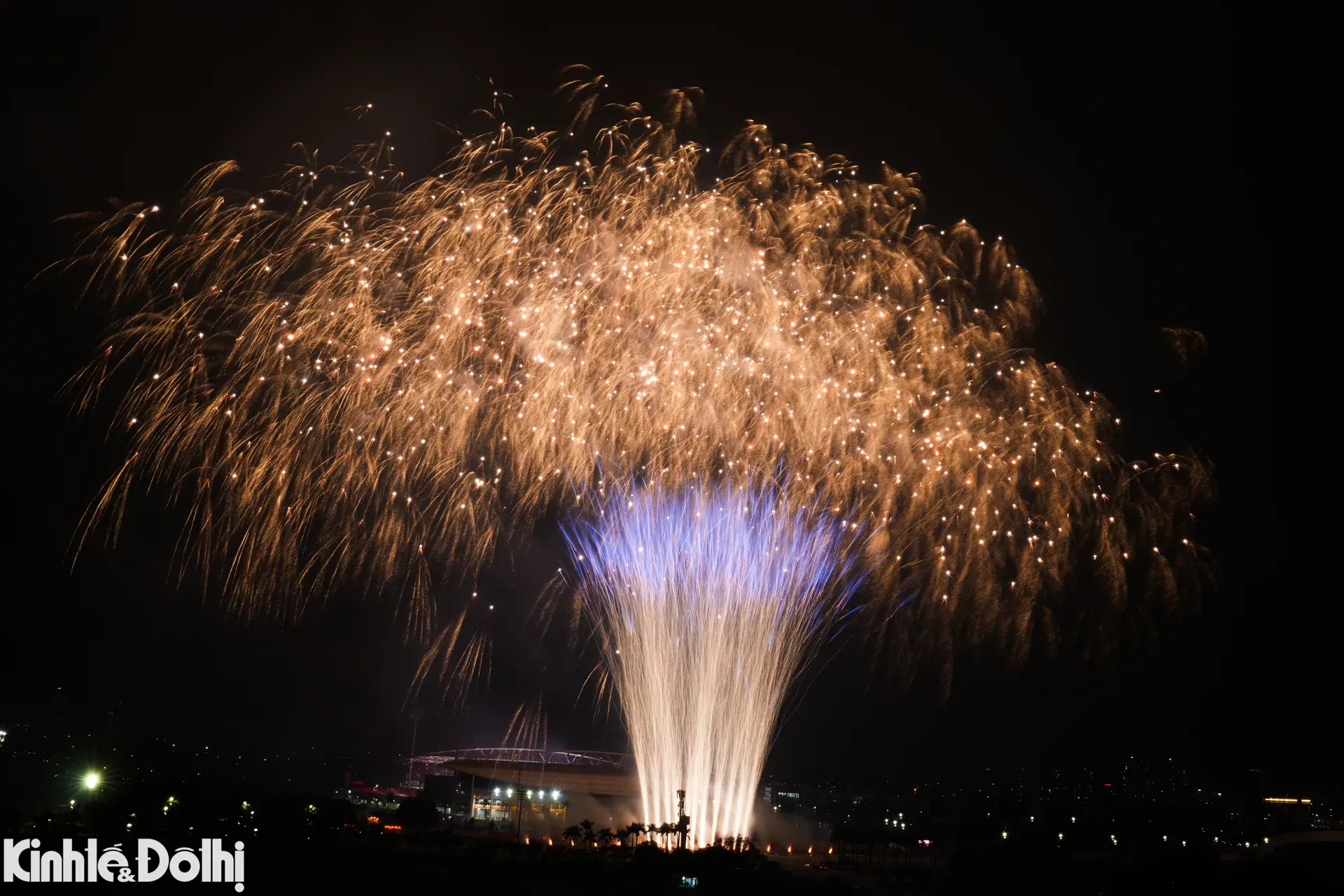 Fireworks are launched from My Dinh National Stadium during the national art program in the evening of January 23. Photos: Ngoc Tu/ The Hanoi Times