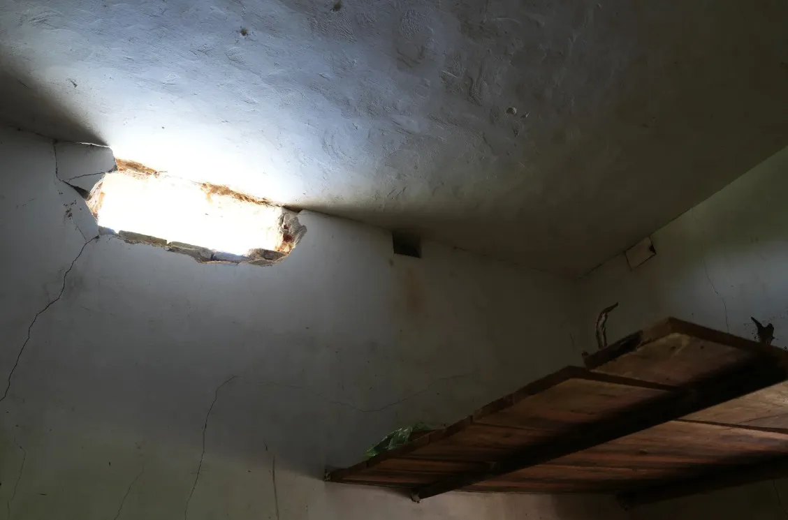 The hole made by rescuers to pull a trapped family to safety during the flood night in Trai Cau.