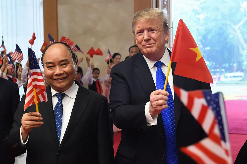 | US President Donald Trump, Vietnam’s Prime Minister Nguyen Xuan Phuc in Hanoi. Photo: AFP |