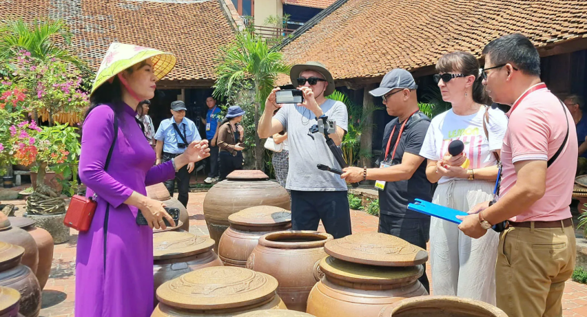 The locals also open their ancient houses for tours, serve local specialties such as che lam (sticky rice candy) and tuong ban (fermented soybean paste), and invite visitors to join in seasonal farmwork.