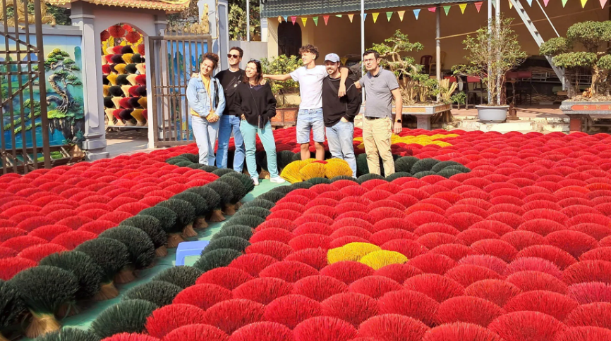 Tourists visit Quang Phu Cau incense village in Ung Thien Commune
