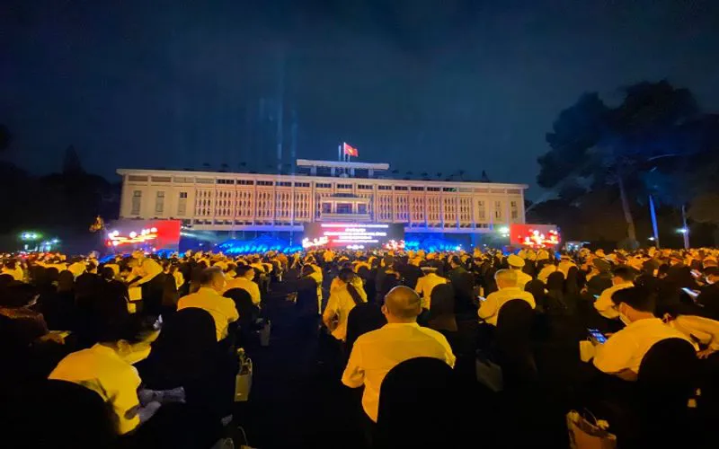 Over 1000 attendants and 50 families of those who died of Covid-19 joined the ceremony in HCMC. The main event took place at Reunification Palace in District 1 and a candlelight vigil was held in multiple districts and lanterns were released along Nhieu Loc-Thi Nghe Canal at 8:35 pm.