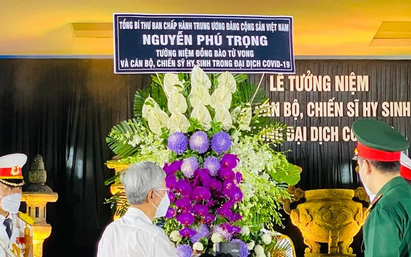 General Secretary Nguyen Phu Trong sent a wreath to commemorate the deceased compatriots and soldiers during the Covid-19 pandemic. |