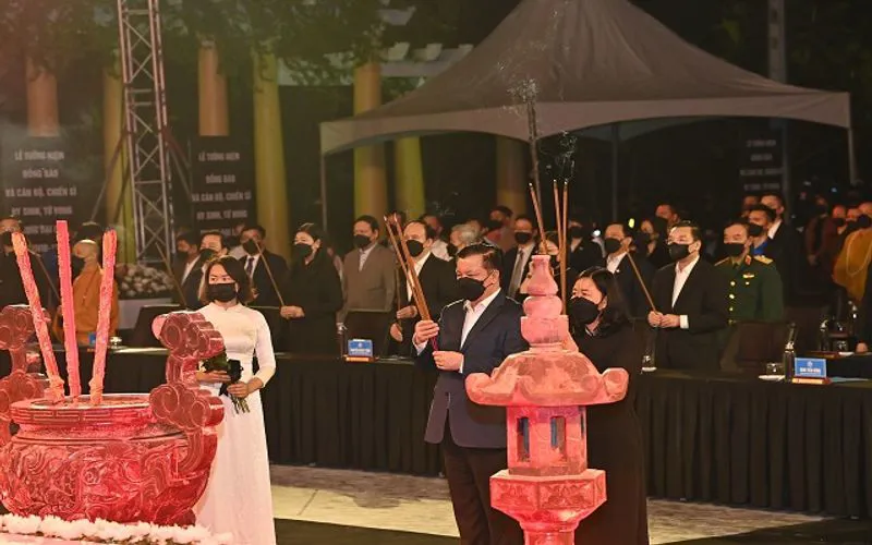 Speaking at the memorial ceremony, President of the Central Committee of the Vietnam Fatherland Front Do Van Chien expressed his respect and deep condolences to the families of the deceased victims of Covid-19 and prayed for their souls.