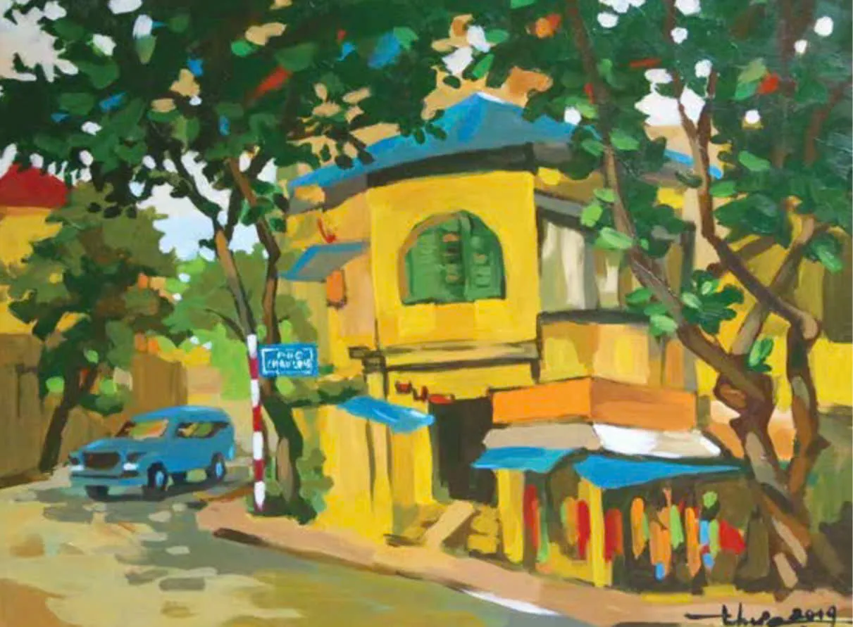 A lively corner of Hanoi comes to life in Tran Duc Thuc’s painting.