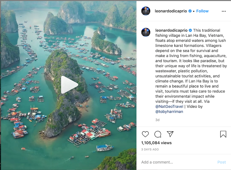 | Leonardo DiCaprio praises the natural beauty of Lan Ha Bay’s fishing village on his Instagram. |