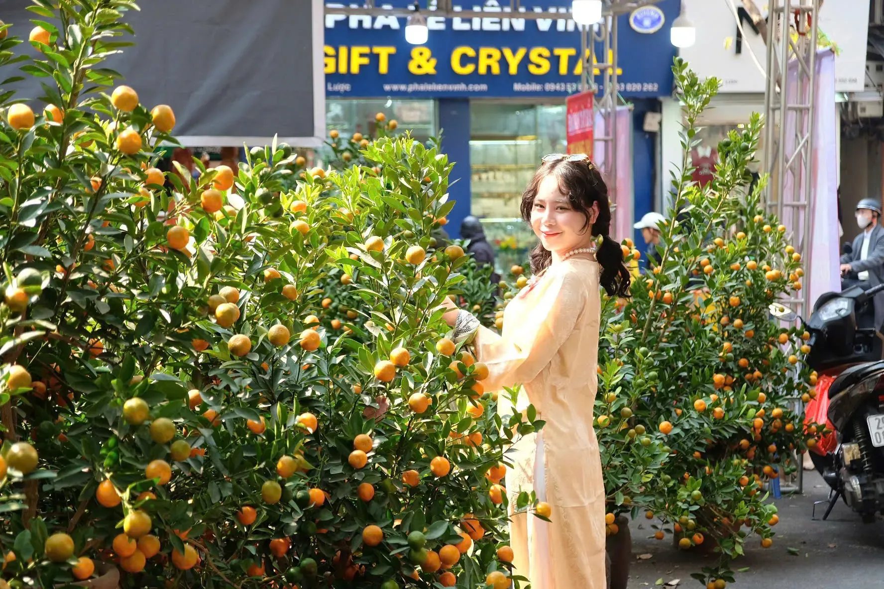 At Hang Luoc Spring Flower Market, girls are able to posing for photos. Photo: Cam Tu