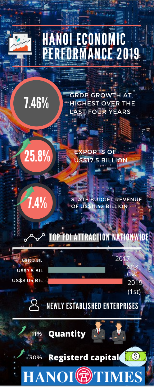 On the back of the estimated GRDP growth rate of 7.46% in 2019, a four-year high, Hanoi targets the GRDP in 2020 to grow at least 7.5% onwards.