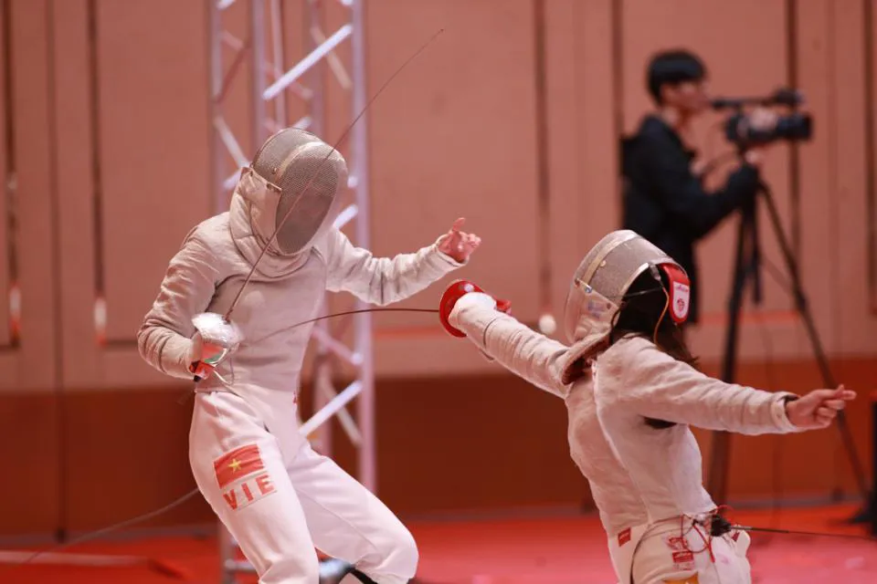 | Vietnamese player during a fencing match at the 32nd SEA Games. Photo: Bui Luong/The Hanoi Times |