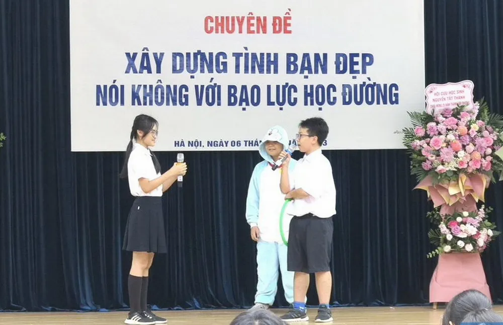 A seminar training for Hanoi students on preventing school violence and building up good friendship. Photo: giaoducthoidai.vn
