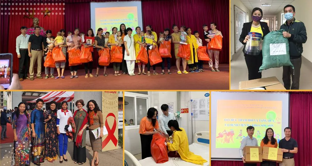 | Dr. La Thi Lan, on behalf of Hanoi CDC, gifts pediatric patients at Soc Son General Hospital and with HIV/AIDS prevention to delegates on World AIDS Day (December 1) events. |