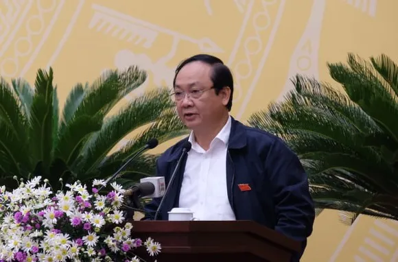 Vice Chairman of Hanoi People's Committee Nguyen The Hung speaks at the meeting. Photo: Pham Hung |