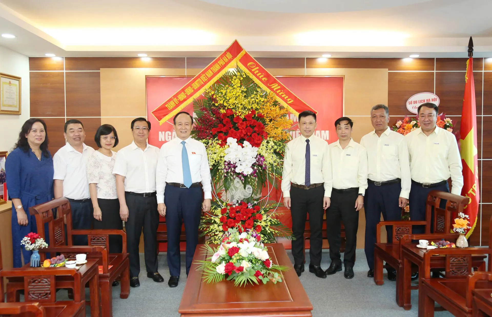 Chairman of the Hanoi People's Council Nguyen Ngoc Tuan leads a delegation to visit Kinh te & Do thi Newspaper on June 18. Photos: Pham Hung/The Hanoi Times