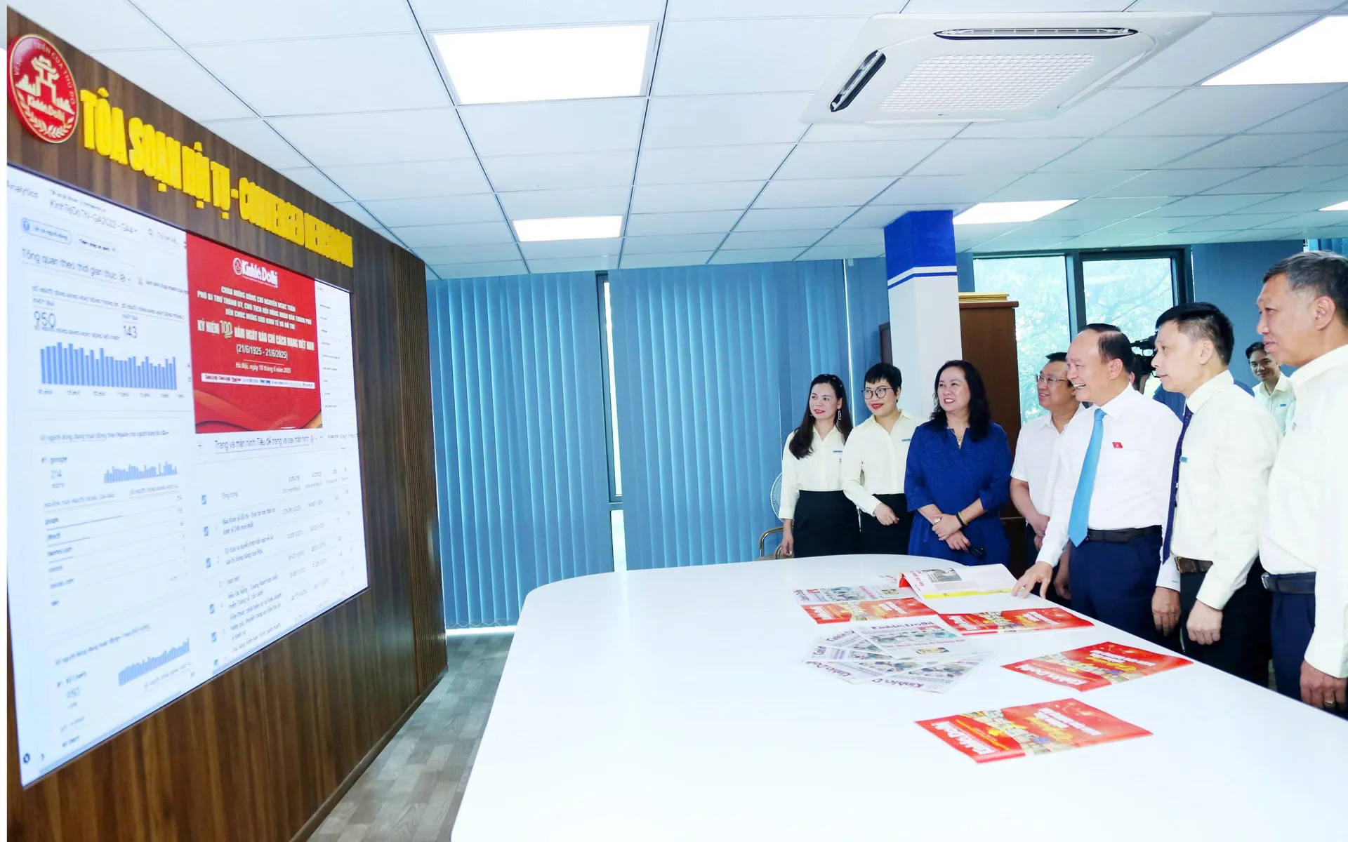 The chairman of the Hanoi People's Council visits the newspaper's converged newsroom.