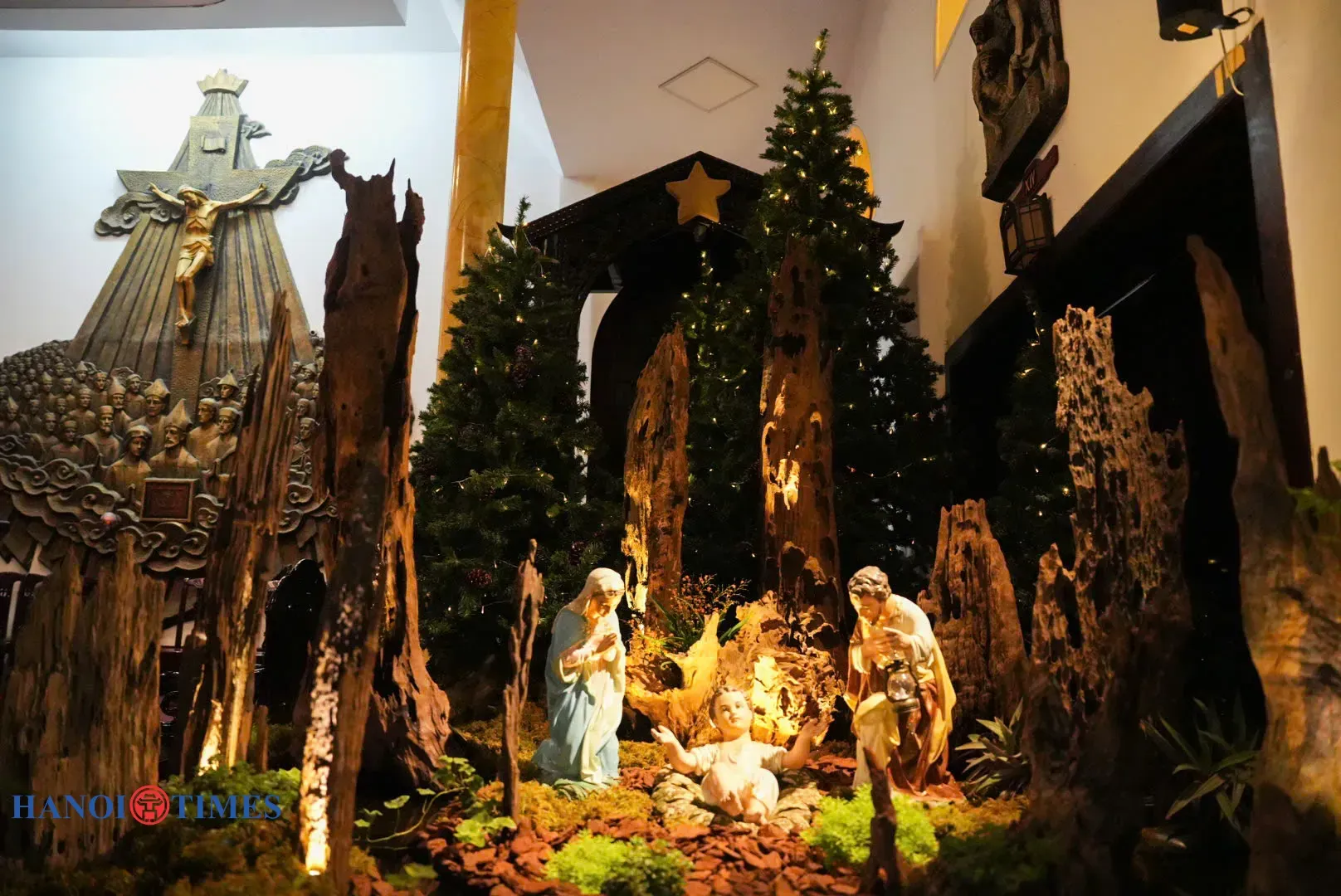 At Thai Ha Church, the decorations sit mainly inside the church and use wood as the primary material, creating a warm and intimate atmosphere.