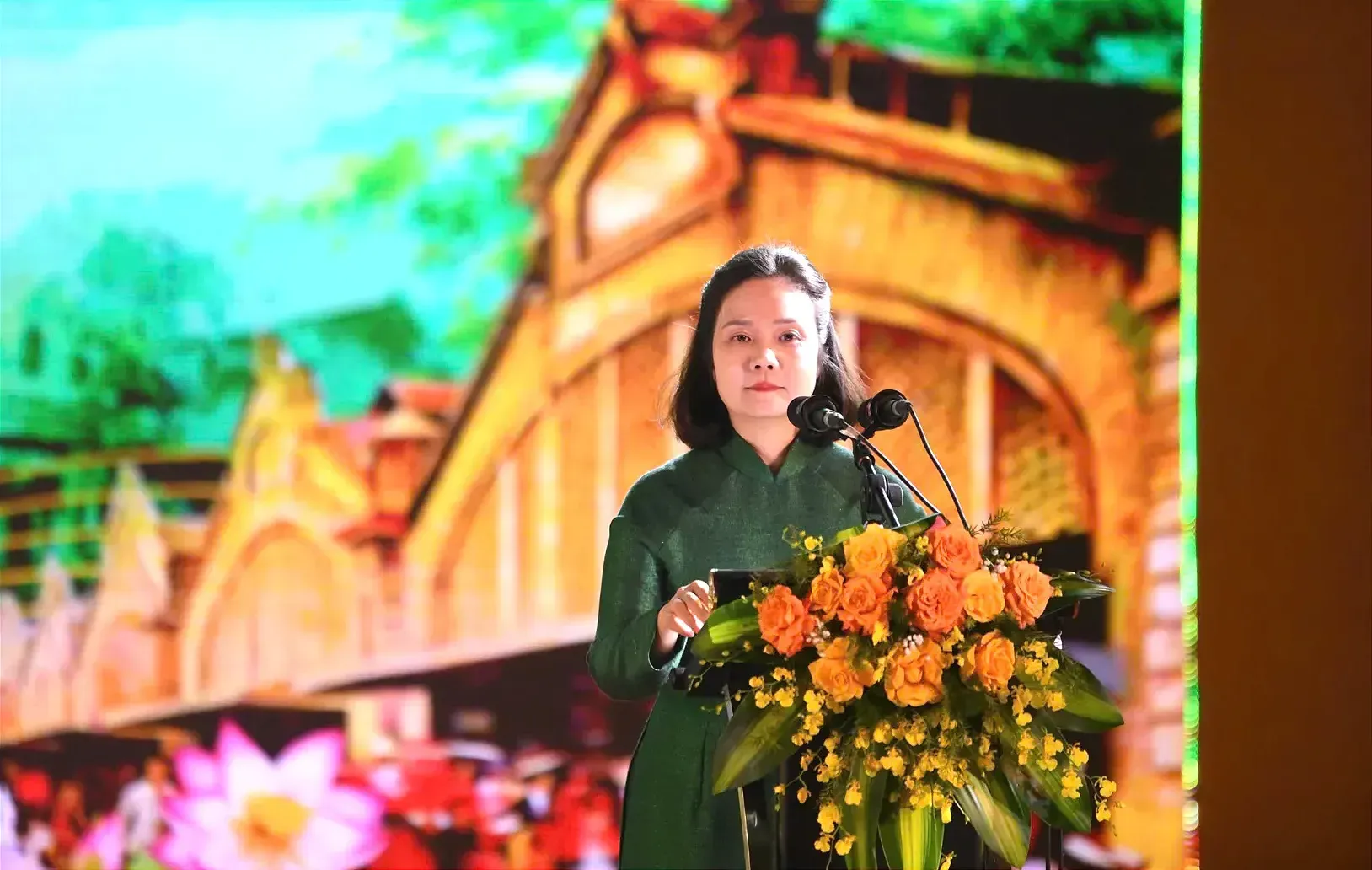 Le Thi Anh Mai, Deputy Director of the Department of Culture and Sports addresses the Hanoi Culinary Culture Festival 2025 on December 19, kicking off the city’s celebration of its rich gastronomic heritage. Photo: Duy Khanh/ The Hanoi Times