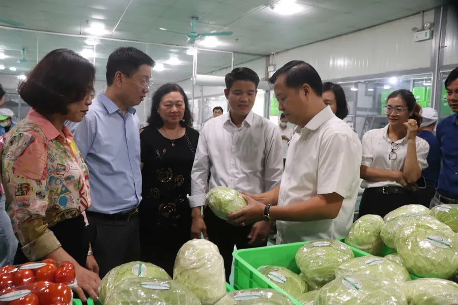 An interdisciplinary team from Hanoi inspects a vegetable farm in Thanh Tri District. |