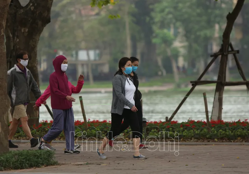 Hanoi's residents wear face masks when walking by the Hoan Kiem lake. Photo: Kinhtedothi.vn |