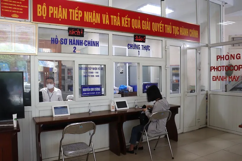 | A local resident at the one-stop shop of Dich Vong Hau Ward, Cau Giay District. Photo: The Hanoi Times |