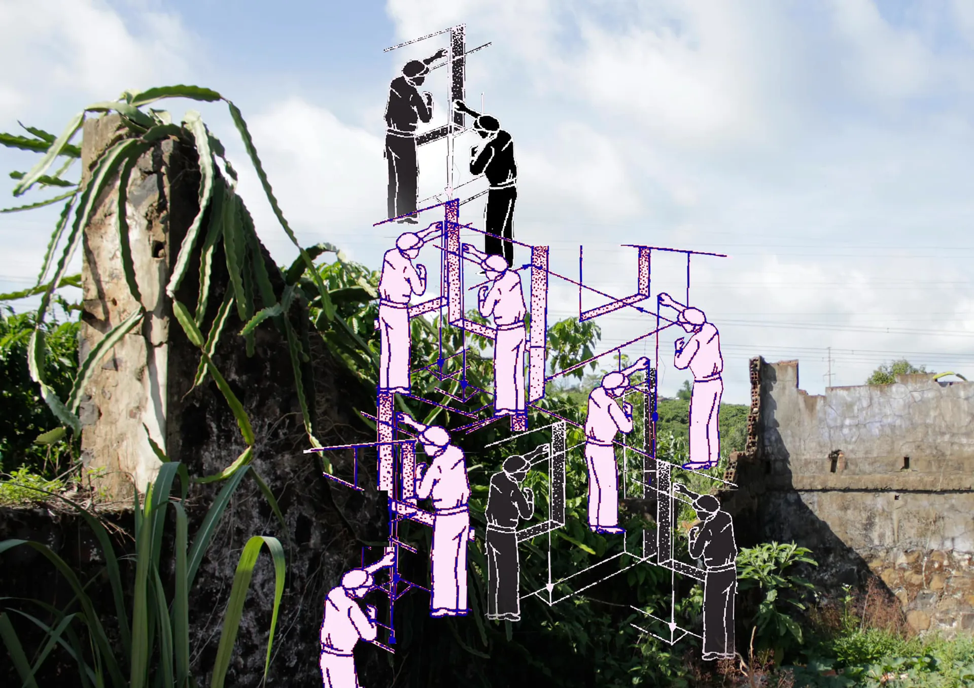Le D.Chunh’s artwork reflects how these settlers rebuilt their lives among the remnants of colonial infrastructure, transforming abandoned plantations, old factories, and irrigation systems into homes and electricity plants.