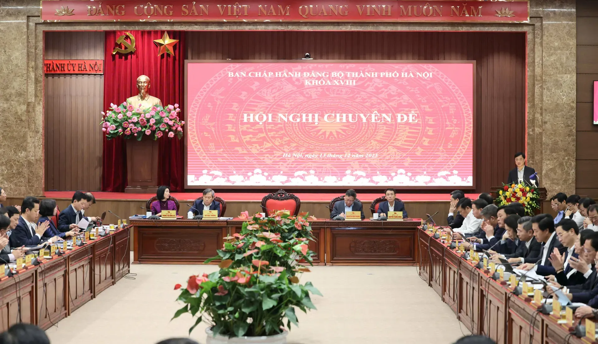 The conference was chaired by Politburo member and Hanoi Party Secretary Nguyen Duy Ngoc, alongside senior city leaders, including Chairman of the Hanoi People’s Committee Vu Dai Thang and Standing Deputy Party Secretary Nguyen Van Phong.