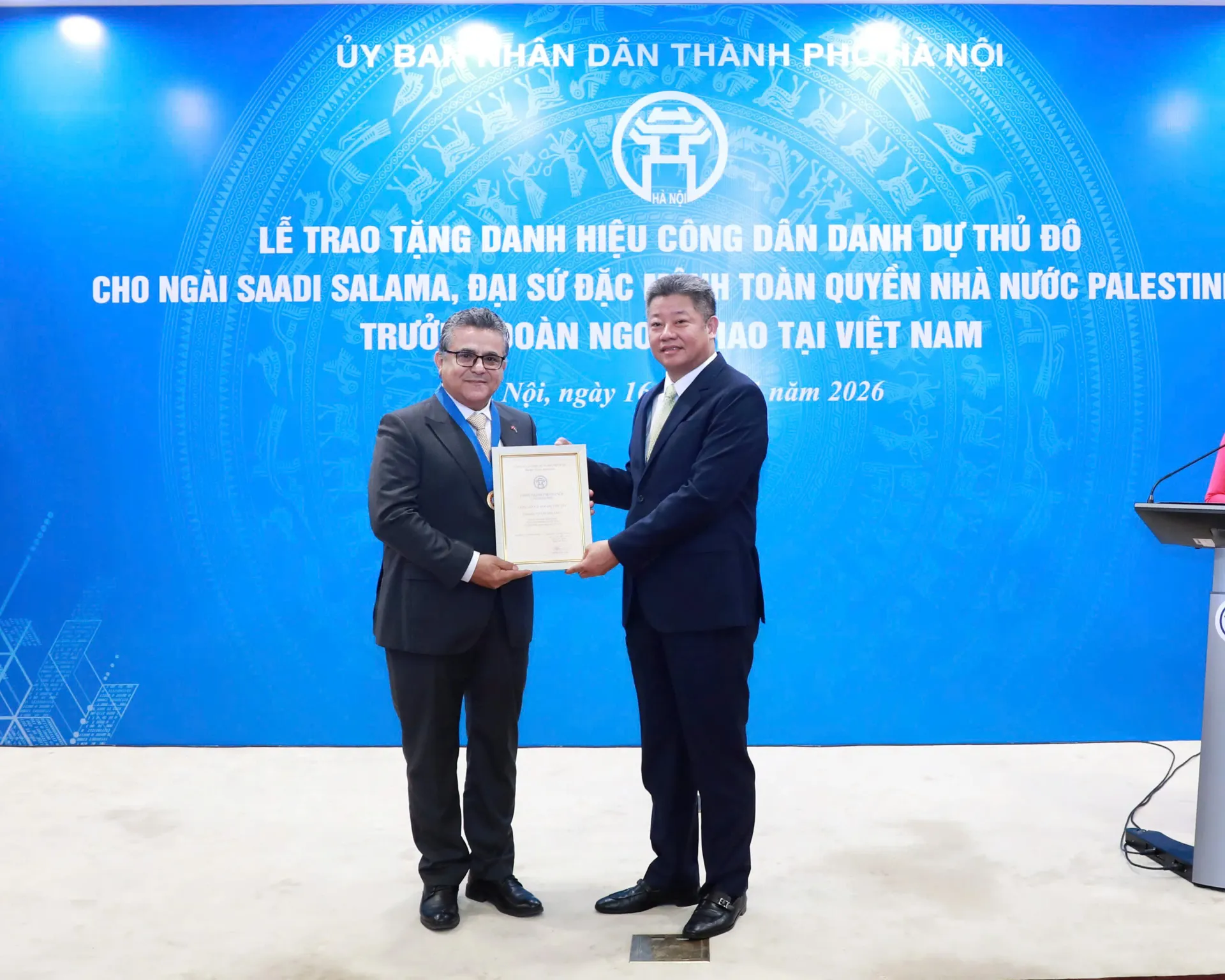 THE HANOI TIMES — The Hanoi authorities on January 16 awarded Palestinian Ambassador to Vietnam Saadi Salama the title of Hanoi honorary citizen, recognizing his enduring contributions to the capital’s development and to Vietnam’s foreign relations.