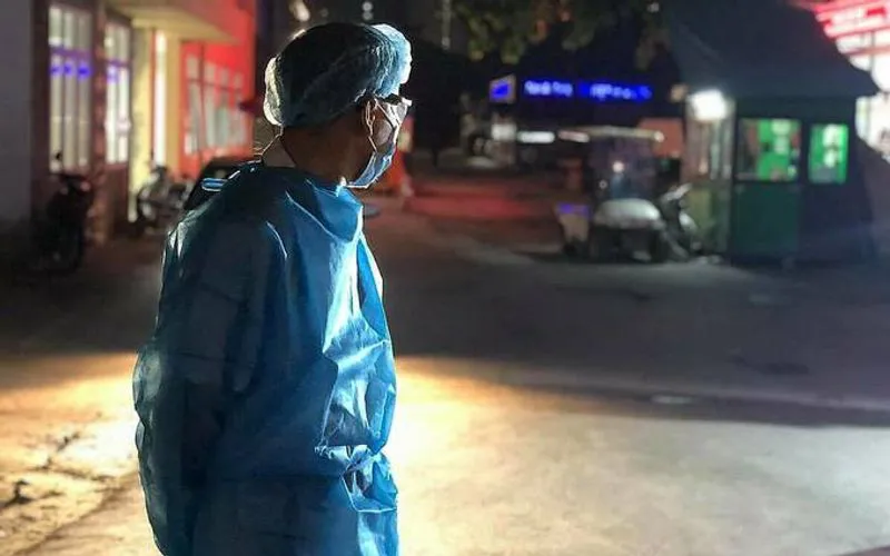A medical worker at the E Hospital in Hanoi on August 19 night. Photo: The Quynh |