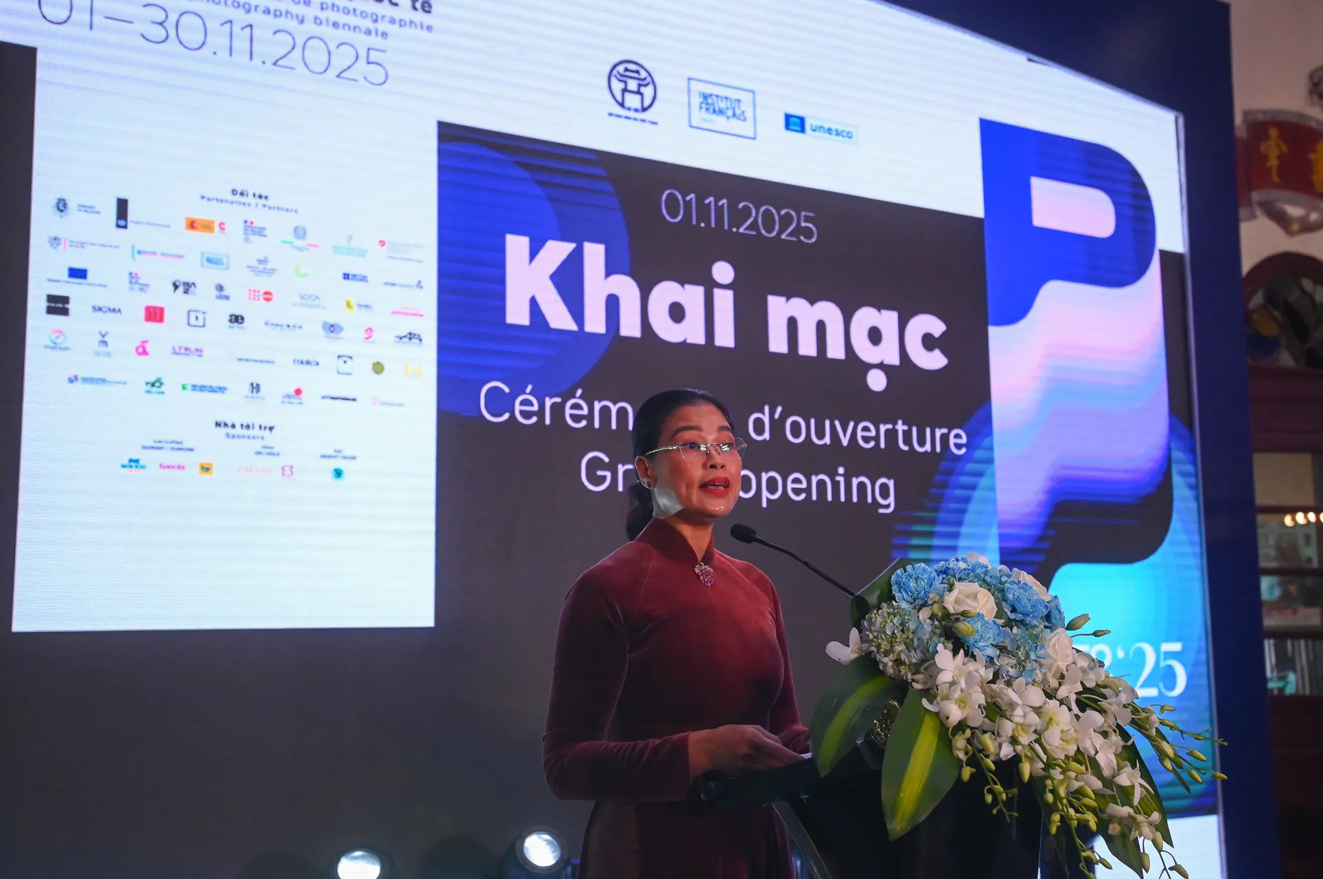Bach Lien Huong, Director of the Hanoi Department of Culture and Sports, delivered her remarks at the opening ceremony of Photo Hanoi’25 – Biennale. Photos courtesy of the event organizer