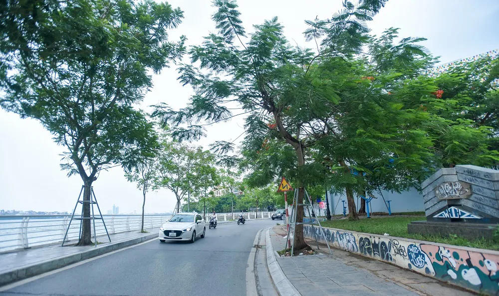 | Deserted road in West Lake on the first day of the restrictions in Hanoi. Photos: The Hanoi Times |