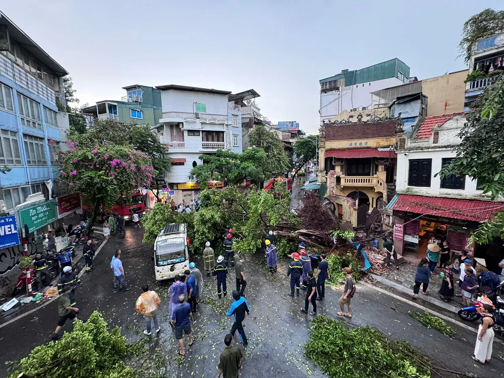 | Trees falling down Hanoi's street on September 6. Photo: Khanh Huy/The Hanoi Times |