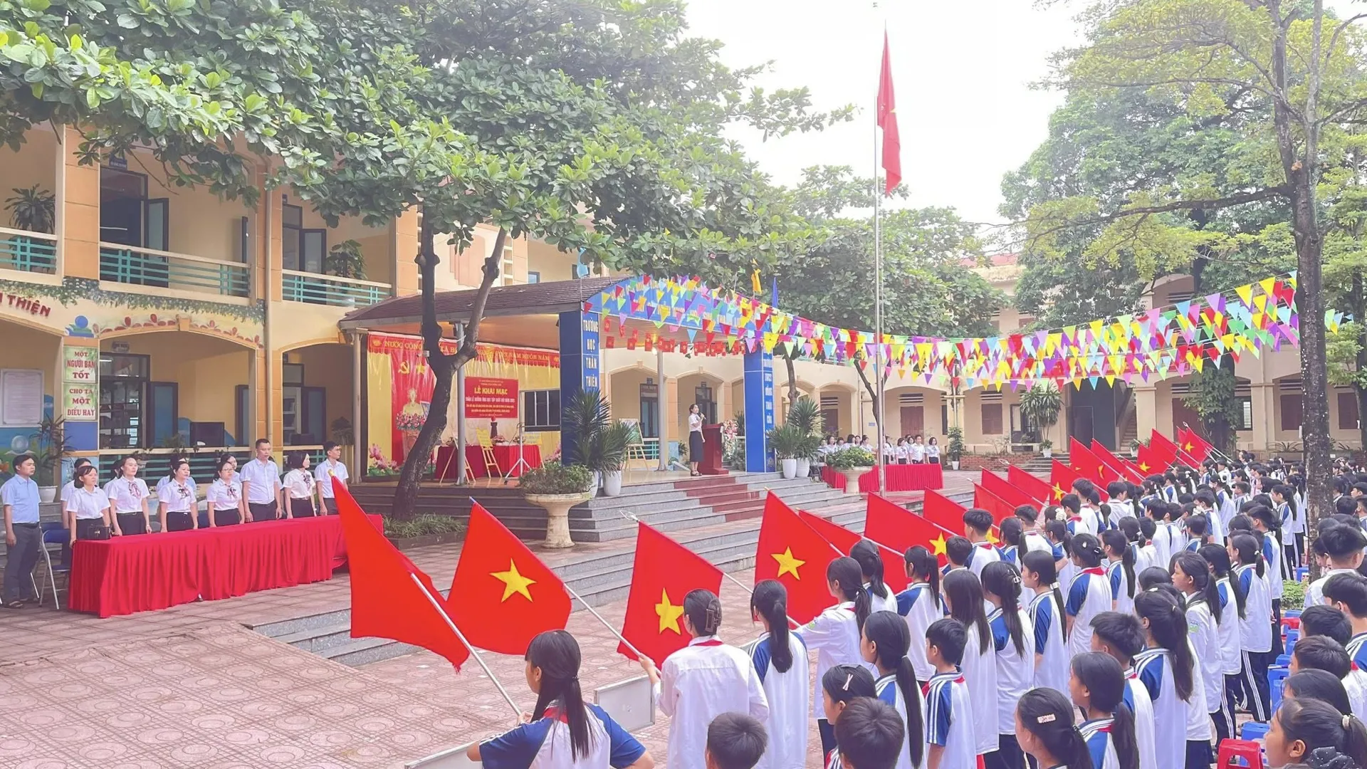 Van Binh Primary School in Thuong Tin Commune launches Lifelong Learning Week 2025 with the slogan “Lighting up the spirit of learning!”. Photo courtesy of the school