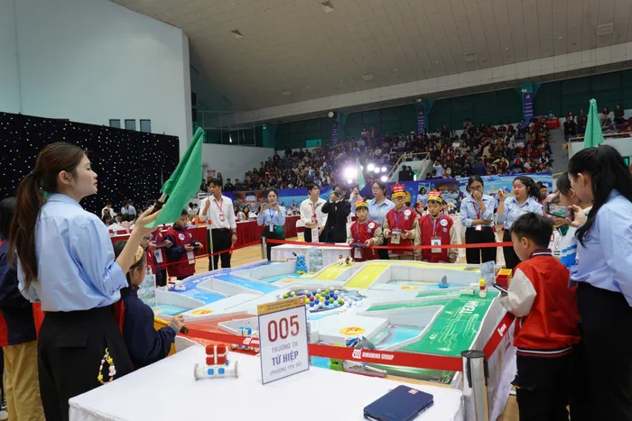 English teacher Nguyen Thi Huong Tra of Kim Duong Primary School said her students were a bit nervous during the English question-and-answer sessions but performed beyond expectations in the robot challenge, showing teamwork and confident robotic control.