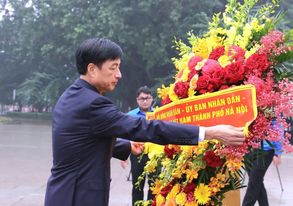 Secretary of the Hanoi Party Committee Nguyen Duy Ngoc lays flowers in memory of Communist leader V.I. Lenin. Photo: Thanh Hai/ The Hanoi Times