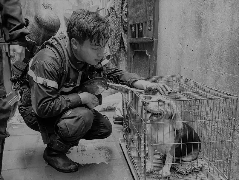 The tragic accident has triggered a huge outpouring of grief expressions from the public, especially after the photo of Do Duc Viet in firefighting uniforms with a dog he saved was posted on the Internet.