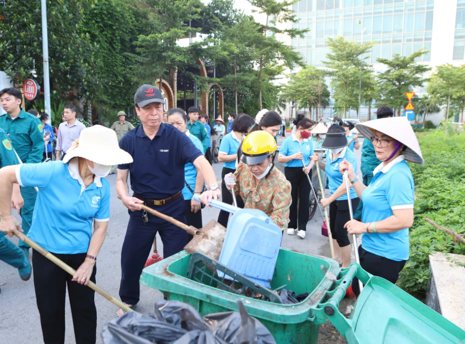 Residents of Xuan Dinh Ward join hands in environmental cleanup efforts.