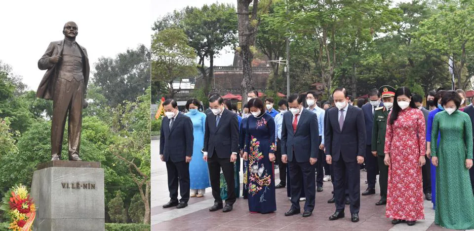 A delegation from the Party Committee, the People’s Council, the People’s Committee, and the Fatherland Front Committee of Hanoi, laid wreaths at the statue of Vladimir Ilyich Lenin on the occasion of his 152nd birthday (April 22, 1870 – April 22, 2022).