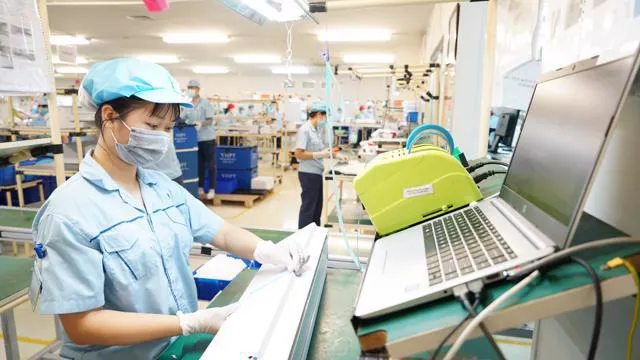 | A female worker performs her task at Rhythm Precision Vietnam Co. Ltd. in Hanoi's Noi Bai Industrial Park. Photo: Pham Hung |