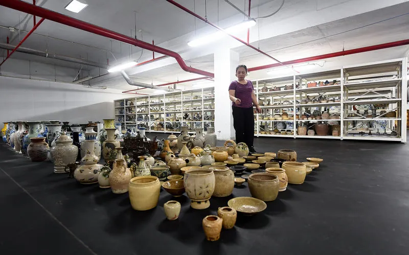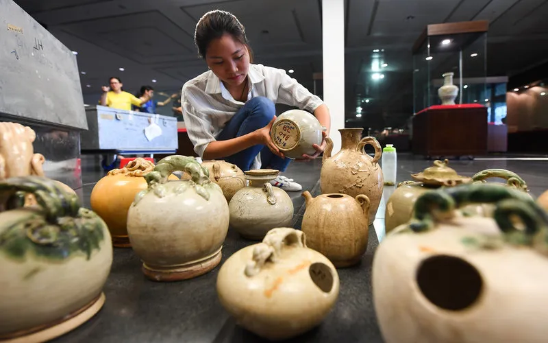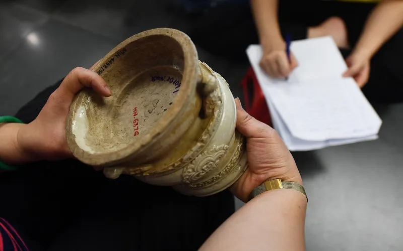 | Nguyen Kim Ngan, who has 20 years of experience as a museum warehouse keeper, said the objects must be carefully packed before being taken to the warehouse. |
