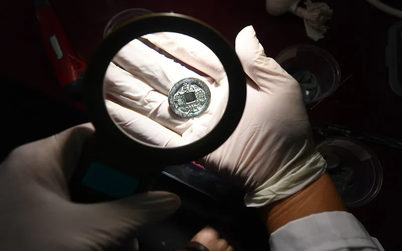 | Small artifacts like coins are examined carefully to avoid oxidation. |