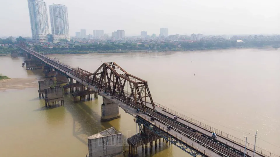 | Bird view of Long Bien Bridge that spans across the Red River in Hanoi. Photo: Ngoc Tu/The Hanoi Times |