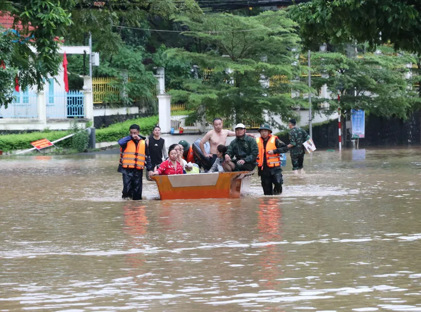 Tuyen Quang border guards evacuate residents to safe areas. Photo: Tuyen Quang Newspaper